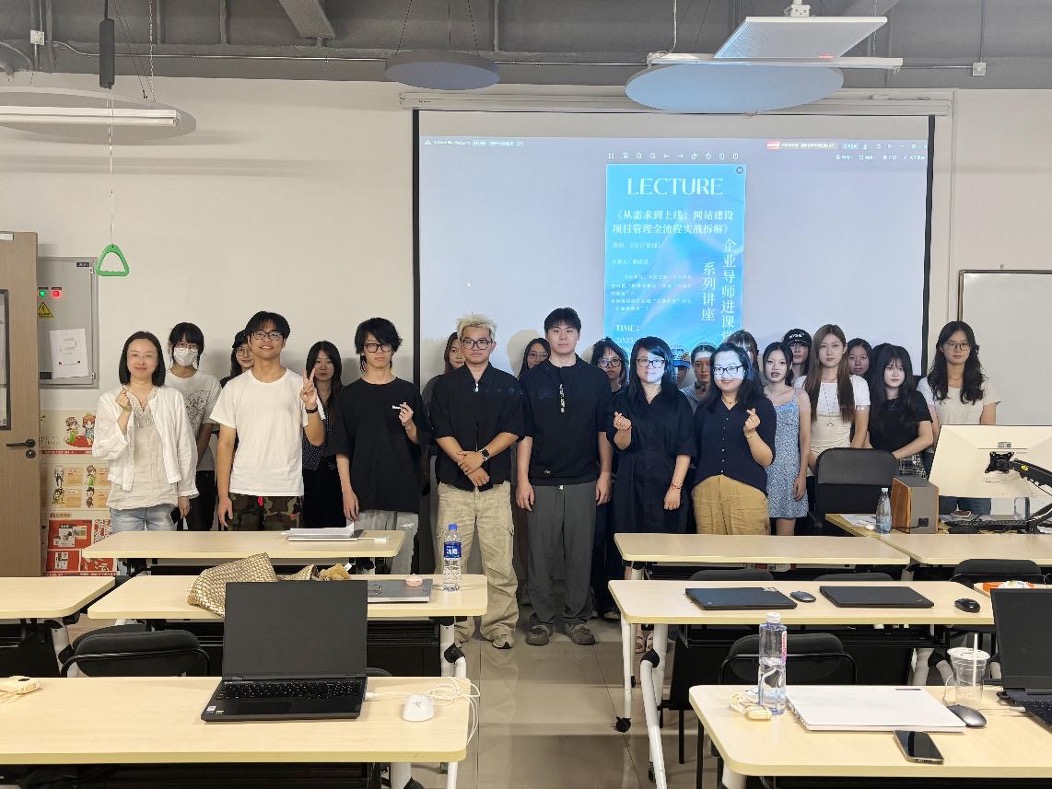 9月8日下午15:00,国际创意设计学院产教楼909教室举办了“企业专家进课堂”专题讲座。本次讲座围绕《从需求到上线:网站建设项目管理全流程实战拆解》展开。岚腾图文设计咨询(上海)有限公司欧美区客户经理耿佳君受邀担任主讲嘉宾。本次讲座由数字媒体艺术系常务副系主任咸妍老师主持,聂莎老师及相关师生参加了《设计管理》课堂讲座。